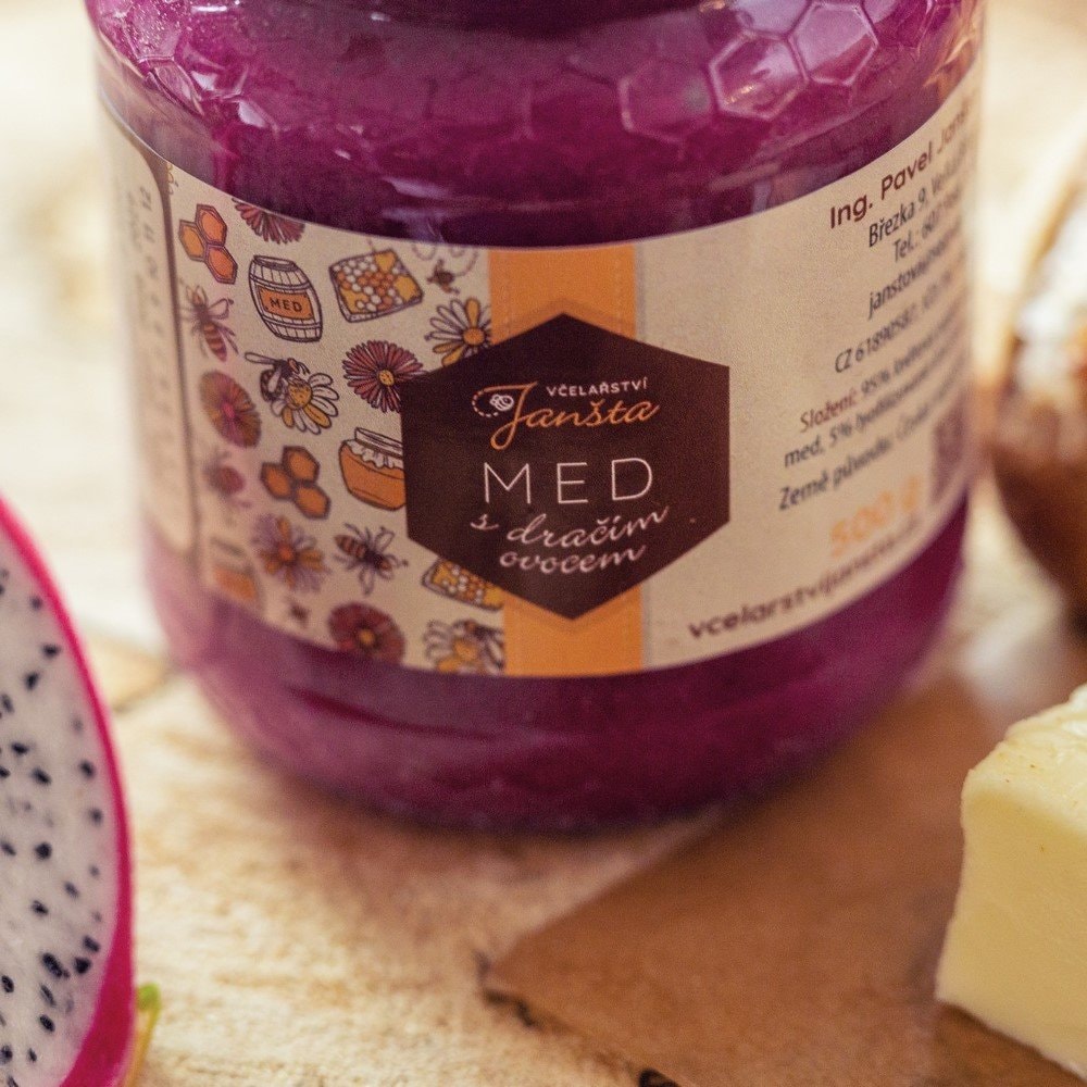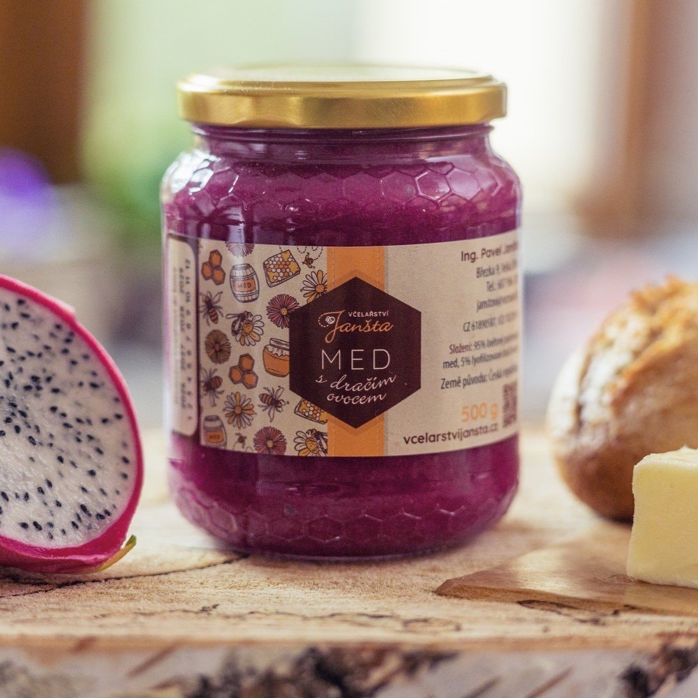 Květový med z české přírody obohacený o špetku exotiky – dračí ovoce. To dodává medu jemně ovocný nádech a atraktivní barvu.