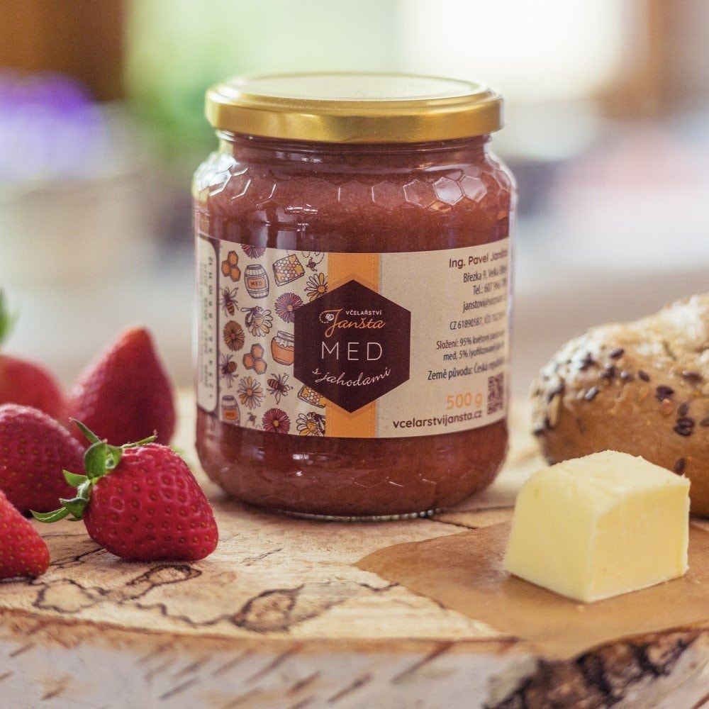 Lahodný květový med se spojil s letní chutí jahod – sladké spojení, které potěší malé i velké mlsouny.